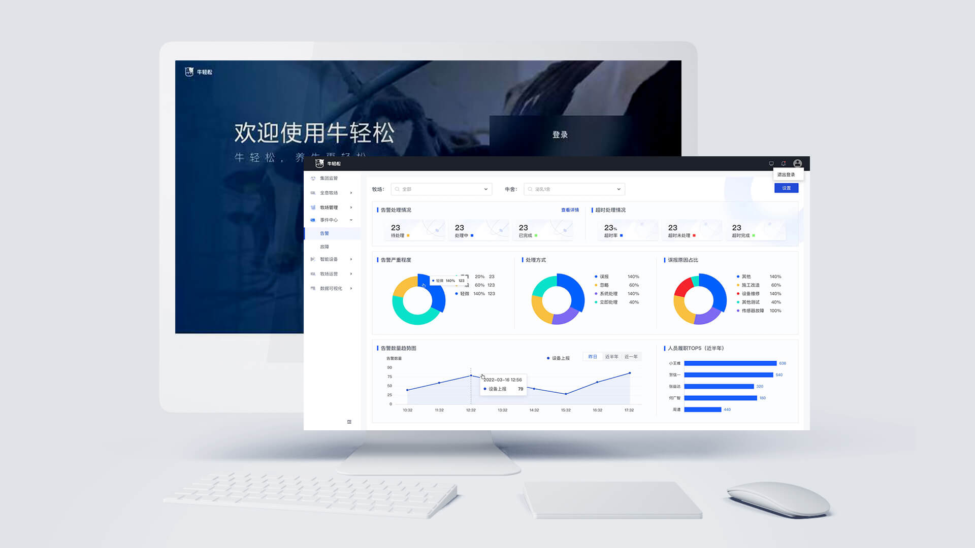 牛輕松對牧場的智能風(fēng)機系統(tǒng)、噴淋系統(tǒng)、視頻監(jiān)控系統(tǒng)、智能照明系統(tǒng)、能源監(jiān)測系統(tǒng)、環(huán)境監(jiān)測系統(tǒng)、工單系統(tǒng)等進行統(tǒng)一的管理與聯(lián)動配置。產(chǎn)品的應(yīng)用實現(xiàn)牧場內(nèi)所有設(shè)備的一鍵全連、協(xié)同聯(lián)動及可視化管理,輔助牧場能夠綠色的、高效的、可持續(xù)盈利的長足發(fā)展。
